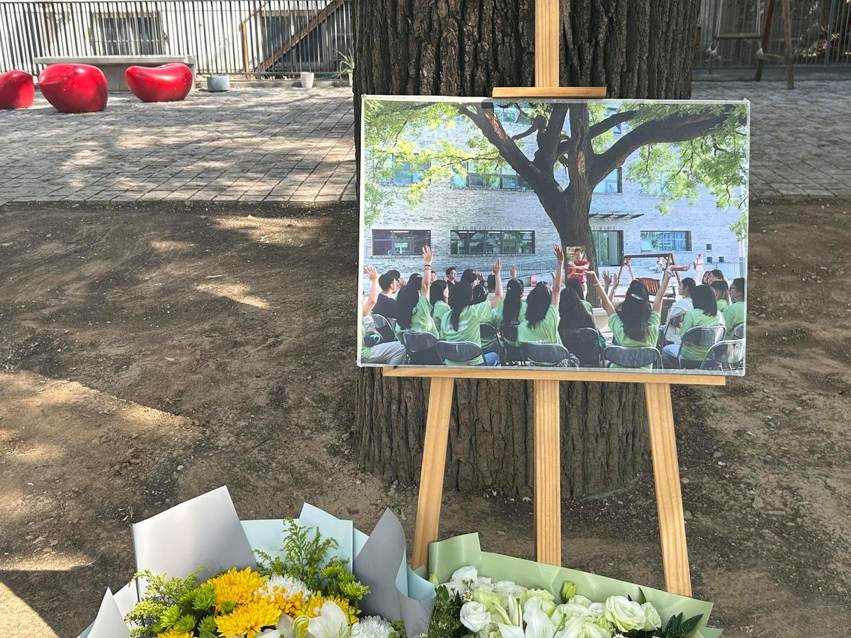 ▲俞孔坚曾经授课的大树下,摆放着曾经的照片 红星新闻记者 付垚 摄