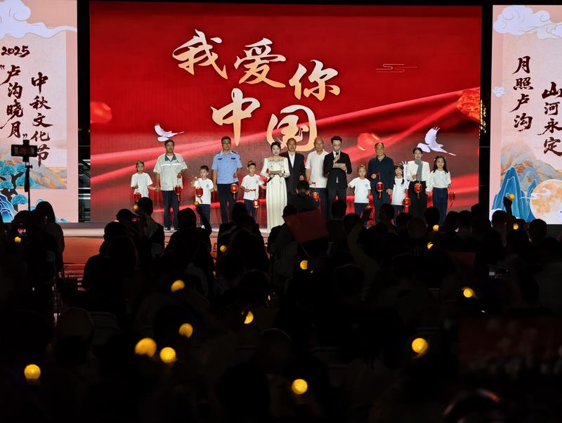 今年的“卢沟晓月”中秋文化节以一场卢沟桥畔的诗会作为开篇,“永定河,出西山,碧水环绕北京湾……”,傍晚时分,来自丰台第五小学的学生们带来了《卢沟谣》。天色渐暗,学生们手持红色灯笼,与佟麟阁将军之孙佟晓东、赵登禹将军之孙赵瑞明等抗战英烈后人以及北京榜样、丰台好人、最美家庭代表等嘉宾共同牵手上台,共同“点亮家灯”,为诗会收尾。