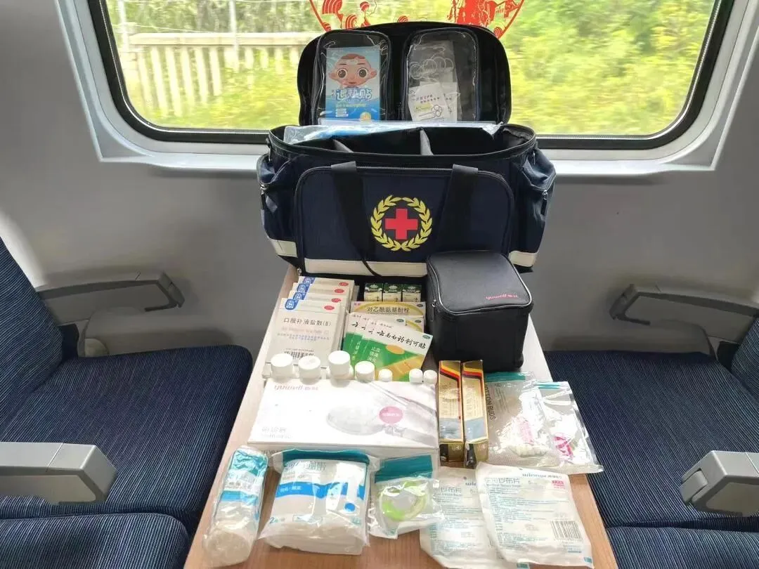 车上突然遇到磕碰破皮、发烧、肚子不适等问题,可向列车乘务员索要爱心医药箱。