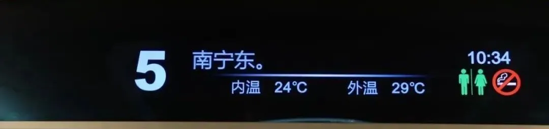 ▽动车组内,车门上方有一个电子显示屏,显示所在车厢的车厢号。
