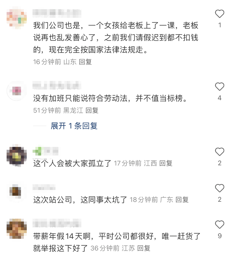 对此,有网友说:“这次我站公司,老板也不容易,台风两天并没有要求居家办公,只让这周六调休,给了这么多福利员工还举报,有点不厚道”。还有网友表示:“对上班人来说,这简直是神仙公司,以后公司依法依规放假,员工终于求锤得锤”。还有网友则称,如果公司平时经常调班,可能会影响员工的生活安排了。