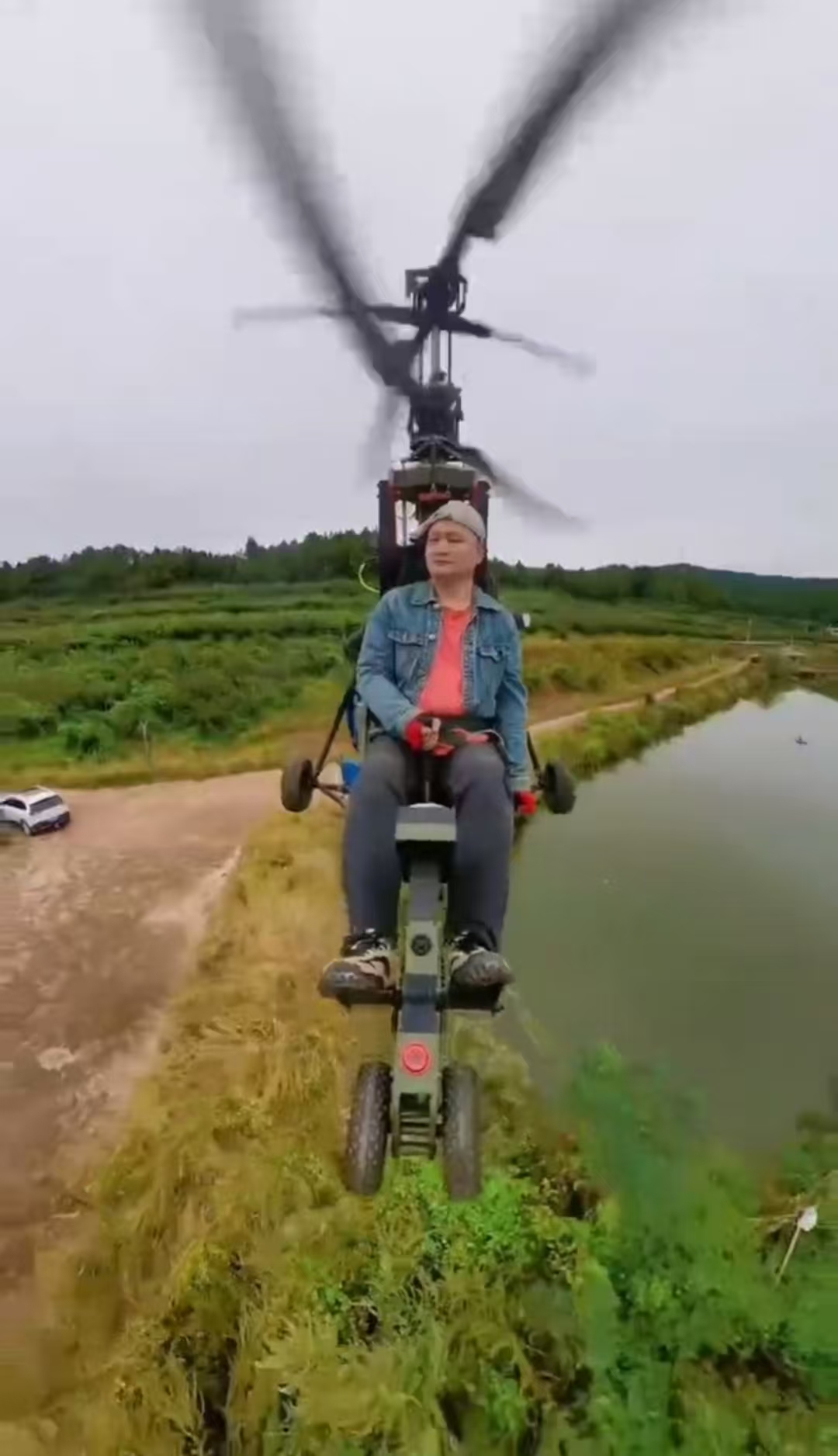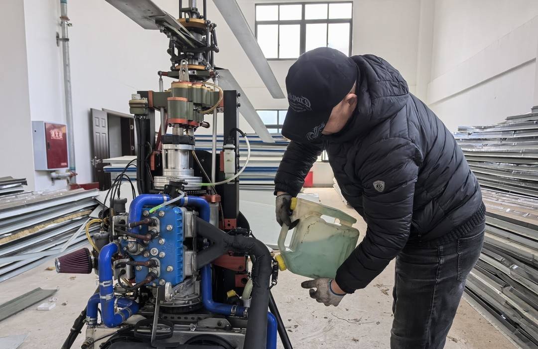 唐的飞机是超轻型单人单座共轴双桨直升机,是其花20多万元买的“二手”飞机,买到后又花了15万元更换了飞机的部分零件。他在网上学习驾驶技术。下班后,每天都会上机练飞。
