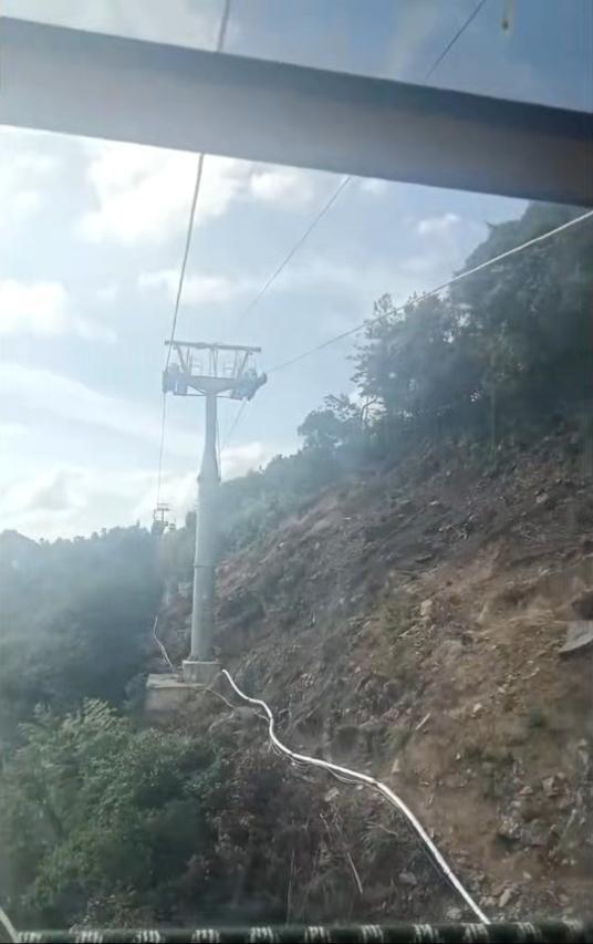 工作人员介绍称:“索道全长7600米,垂直高差是1158.5米。就是昨天下午停了一两分钟。我们总共是三个站,中间站昨天是没停的,昨天是上站到中站这一段。”