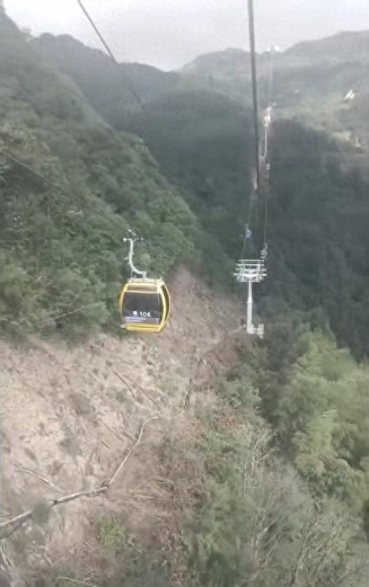 现场视频显示,山间雾气蒸腾,游客坐在停运的缆车里头等待,并未惊慌。