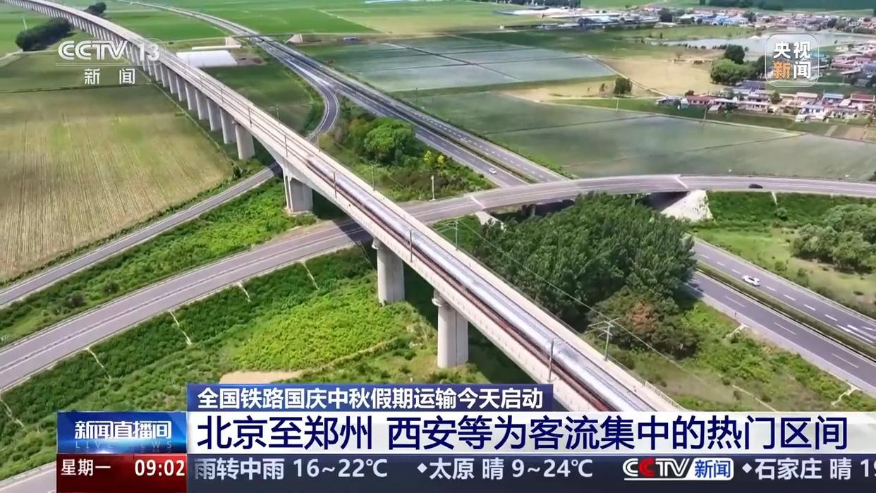 总台央视记者 李伟代:全国铁路国庆中秋假期运输今天启动,到10月10日结束,为期12天。这期间全国铁路预计发送旅客2.19亿人次。预计10月1日将迎来客流最高峰,日均计划开行旅客列车约1.3万列。