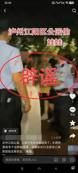 9月27日,有网友发布信息称“泸州江阳区公园偷娃娃”,提醒家长注意孩子安全,引发关注。