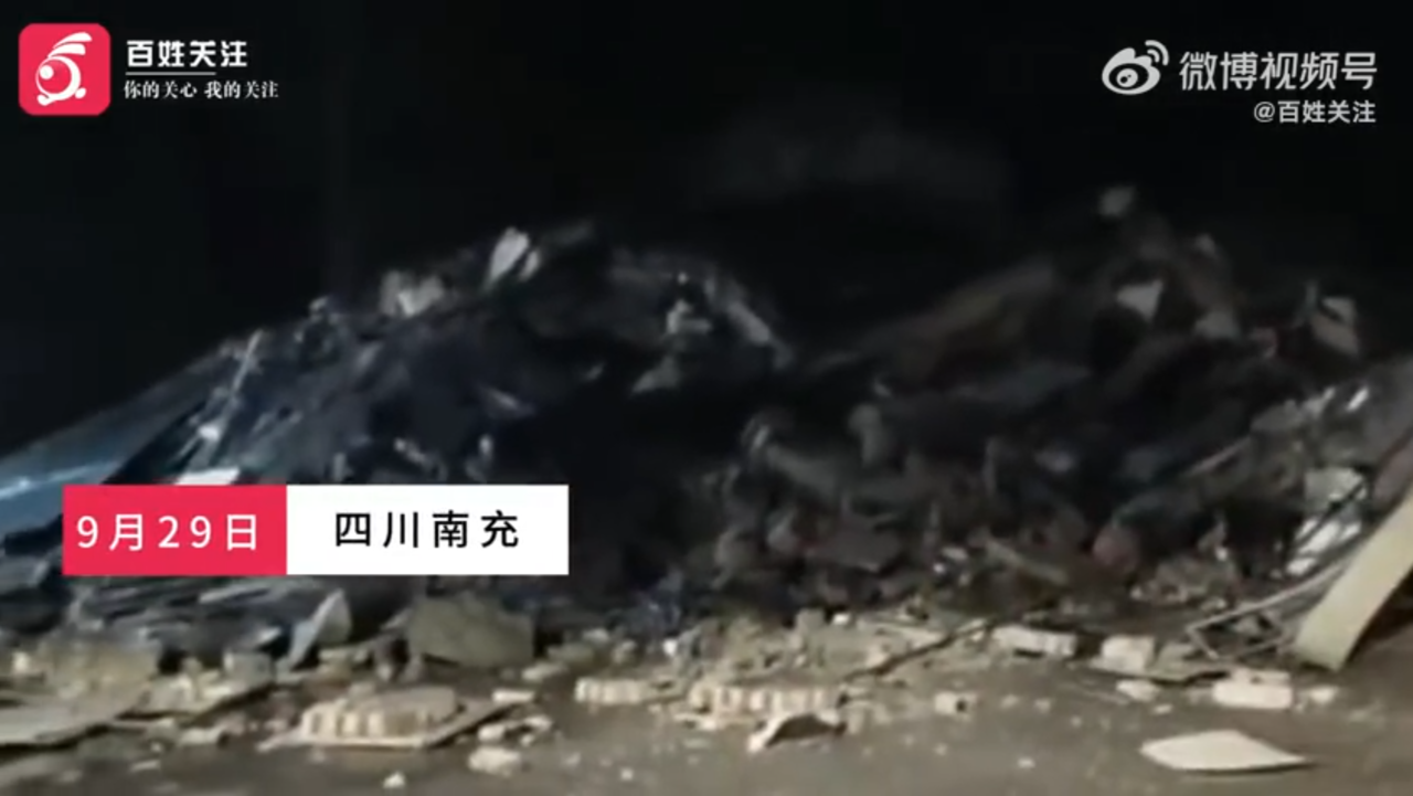 9月29日晚,四川省南充市仪陇县一加油站的办公室被山体滑落的巨石砸中,导致房屋瞬间坍塌成一片废墟。