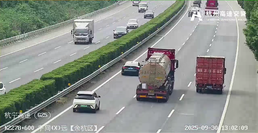 3、G92杭甬高速杭向因大流量188K后方有序缓行。