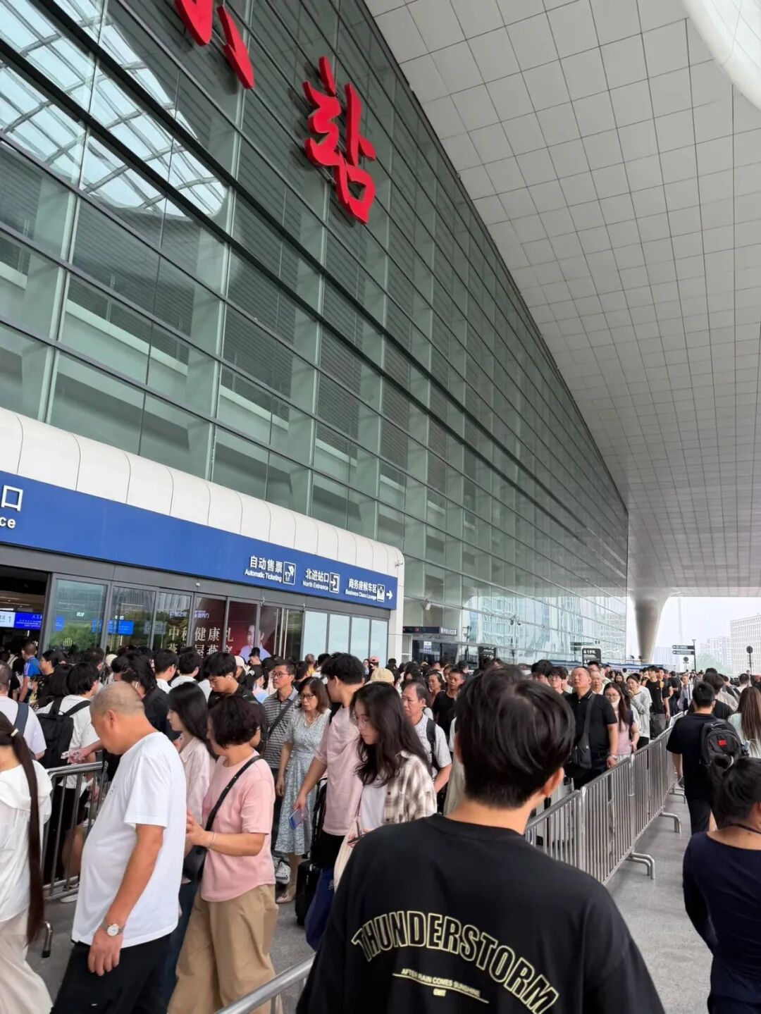 东站的进站口也开出了多条通道,人流有序排队进站。