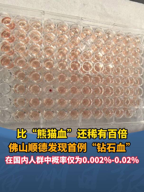记者从佛山市顺德区中心血站获悉,近日该血站检验科筛查出一例稀有血型Jk(a-b-)——稀有度超“熊猫血”百倍的“钻石血”。