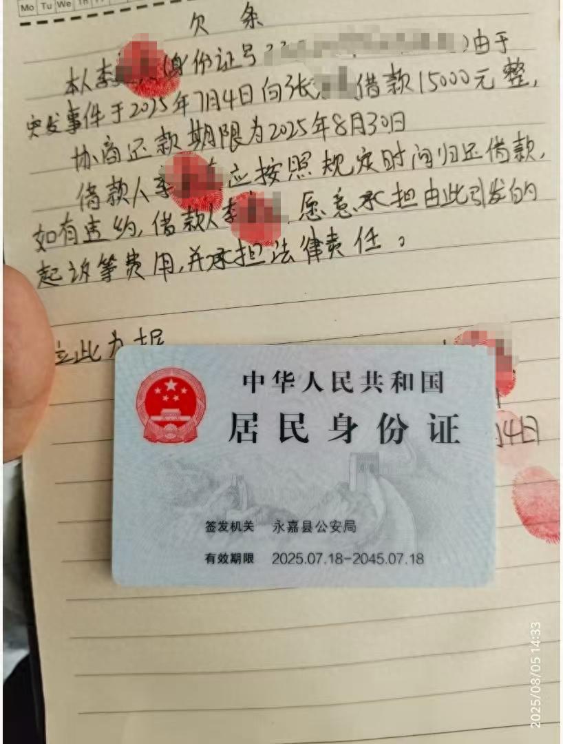 近日,浙江省温州市永嘉县的周女士向华商报大风新闻记者反映,她公公张先生今年70岁,是当地的一名环卫工。2025年6月,当地一名李姓女子向其分3次借款15000元后失联。