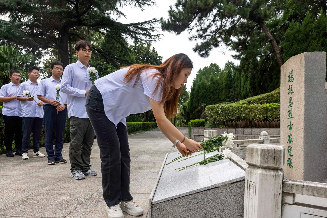 9月30日,人们在江苏省泰州市杨根思烈士陵园献花。新华社发(汤德宏摄)