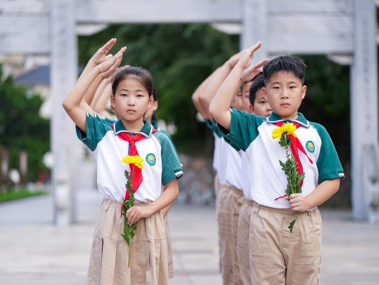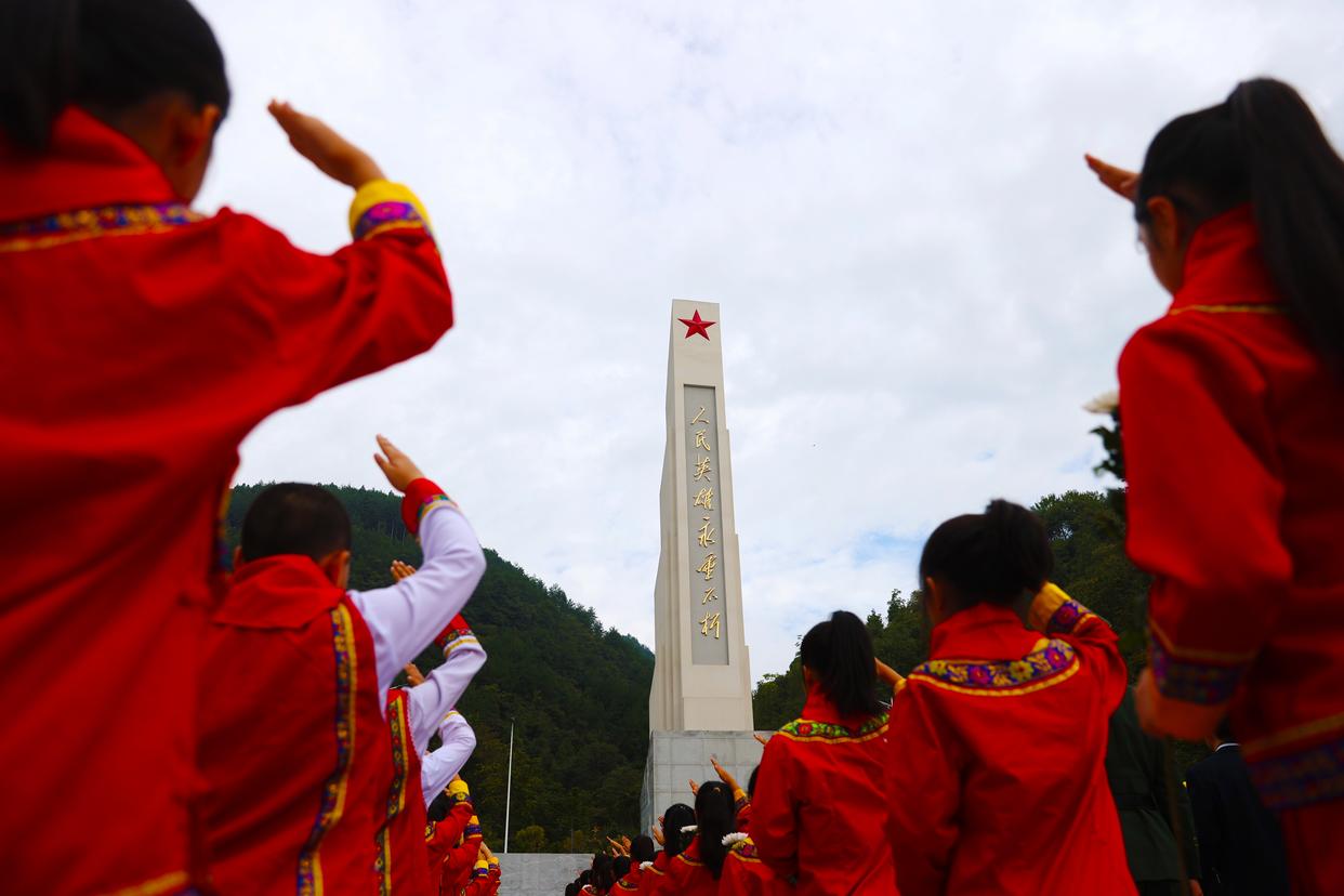 9月30日,少先队员在重庆市黔江烈士陵园参加纪念活动。新华社发(杨敏摄)