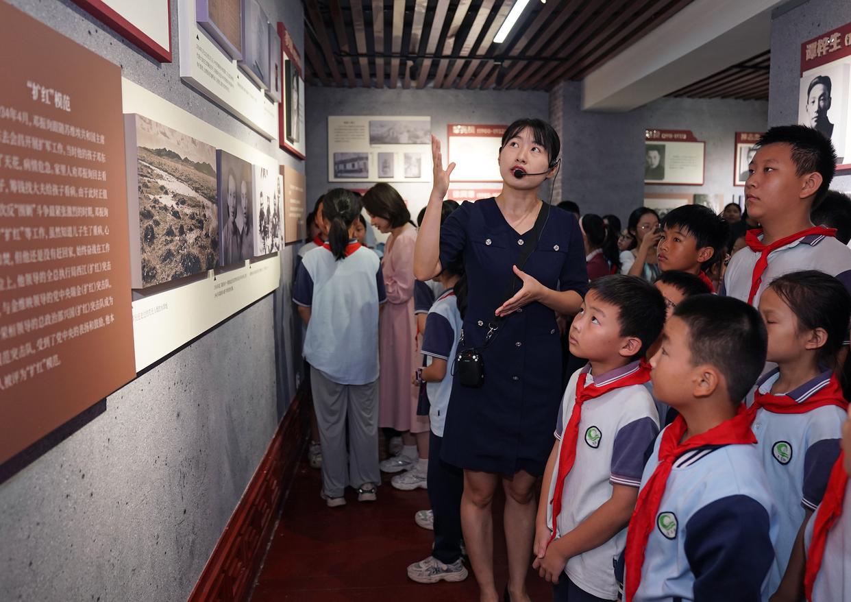 9月30日,在南昌八一起义纪念馆,学生在讲解员带领下参观《信仰的力量——雨花英烈中的铁血战士》专题展。新华社记者 万象 摄
