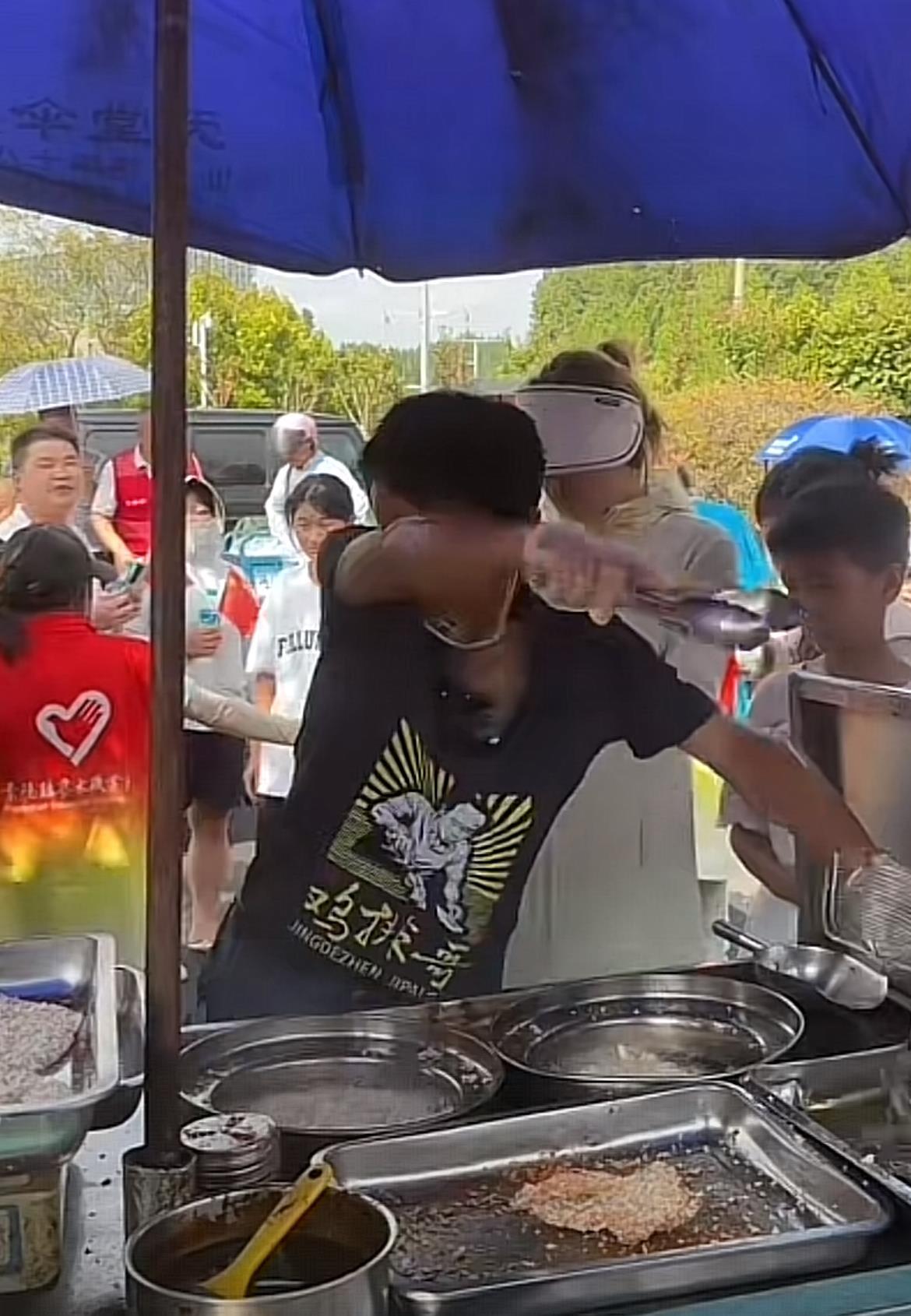 10月1日,国庆假期第一天,江西景德镇爆红的“鸡排哥”换上了新“皮肤”。