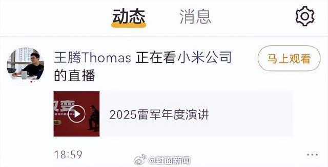 据此前报道,9月25日晚,2025雷军年度演讲举行。小米创办人、董事长兼CEO雷军在介绍小米高管时,名单没有王腾。而微博显示王腾正在收看演讲直播。