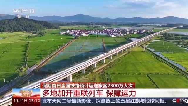 总台央视记者 陈晰:今年国庆、中秋相遇,旅游、探亲等多种出行需求叠加,全国铁路预计,今天将是假期里客流最旺的一天,运送旅客将达2300万人次,计划加开旅客列车2106列,为了让大家走得顺畅便捷。