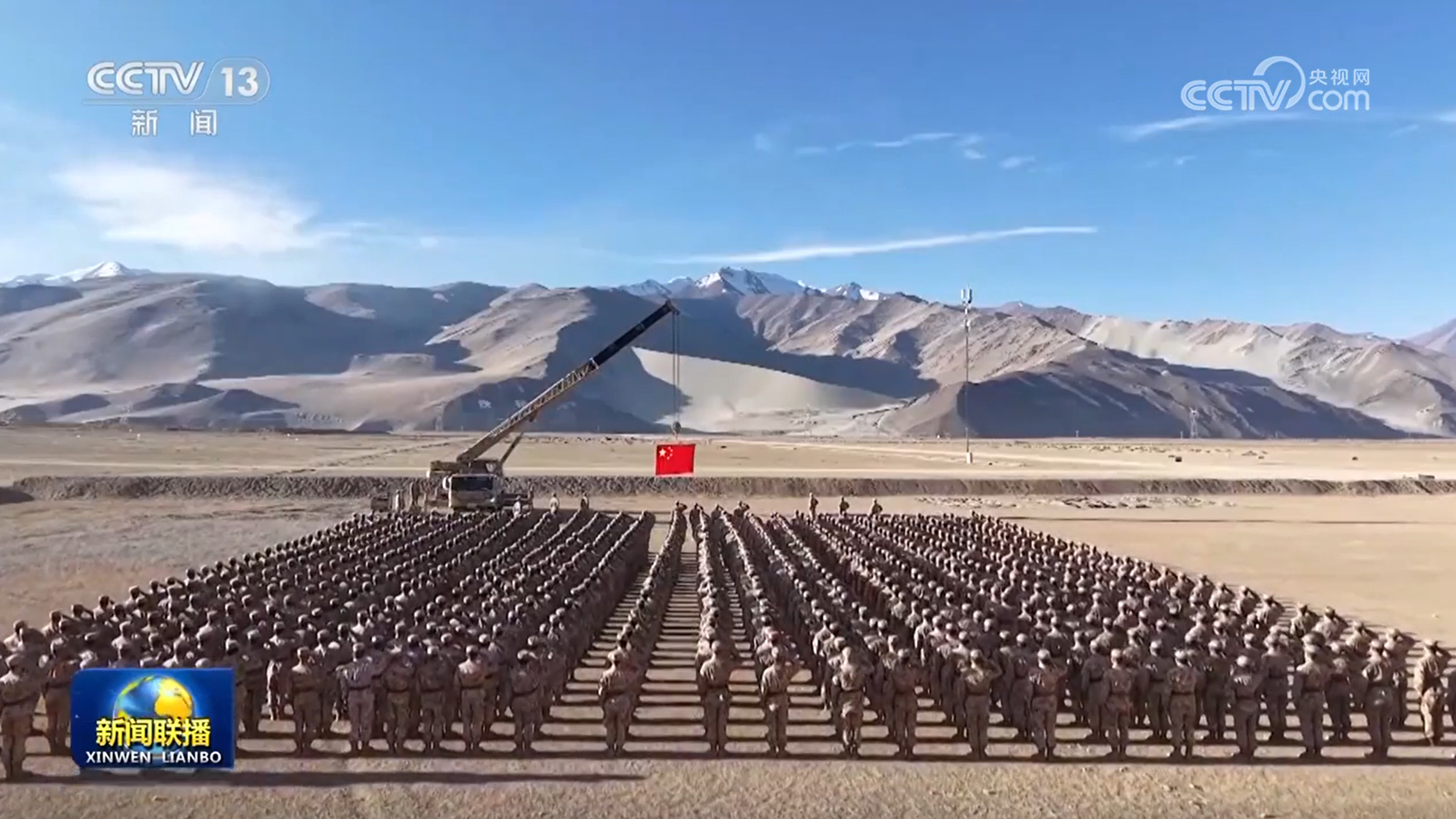 在东极列岛最东端的海军某观通站,在“西陲第一哨”斯姆哈纳边防连,在北纬53°的北极哨所,在“南海第一哨”华阳礁,在全军海拔最高的驻兵点,从雪域高原、戈壁大漠到万里海疆,共和国卫士们升起一面面五星红旗,为祖国母亲献上祝福。