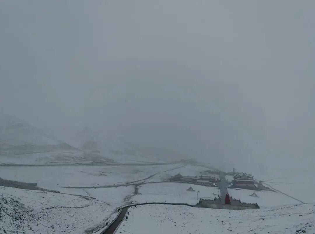 10月1日清晨,多名网友发帖称青海西宁日月山景区下雪,山上白茫茫一片,被积雪覆盖。该景区工作人员告诉极目新闻记者,日月山从昨晚半夜开始下小雪,一直持续至今天上午9时40分左右,不影响景区正常营业,国庆期间游客相比平时更多。