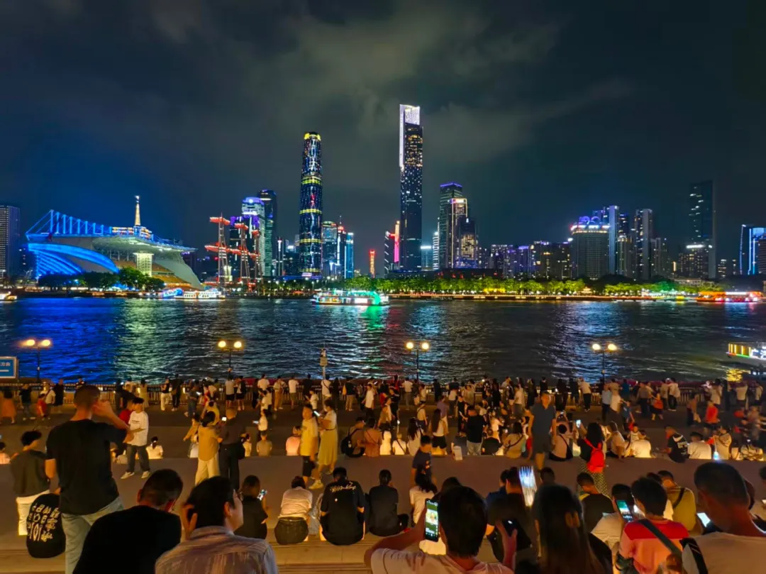 广州塔景区、新中轴线和珠江两岸灯光璀璨,