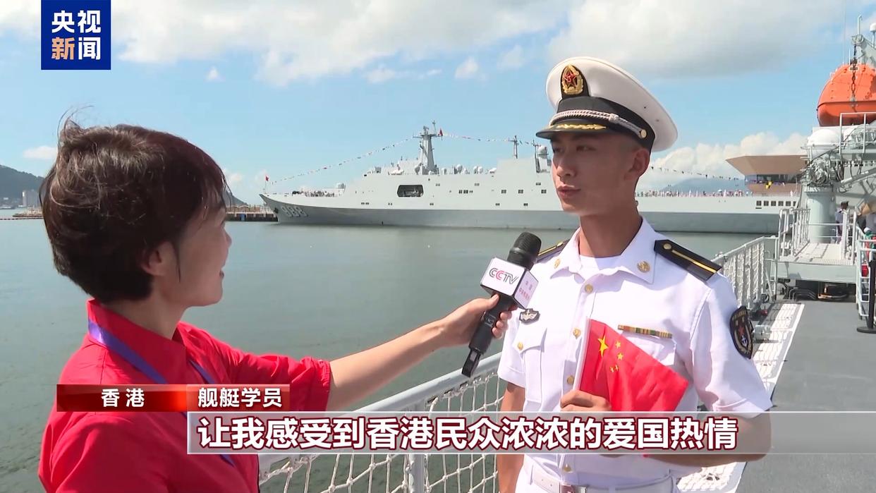 香港市民:祖国繁荣昌盛,看见这两个军舰,我感觉我们国家很强大,很自豪。