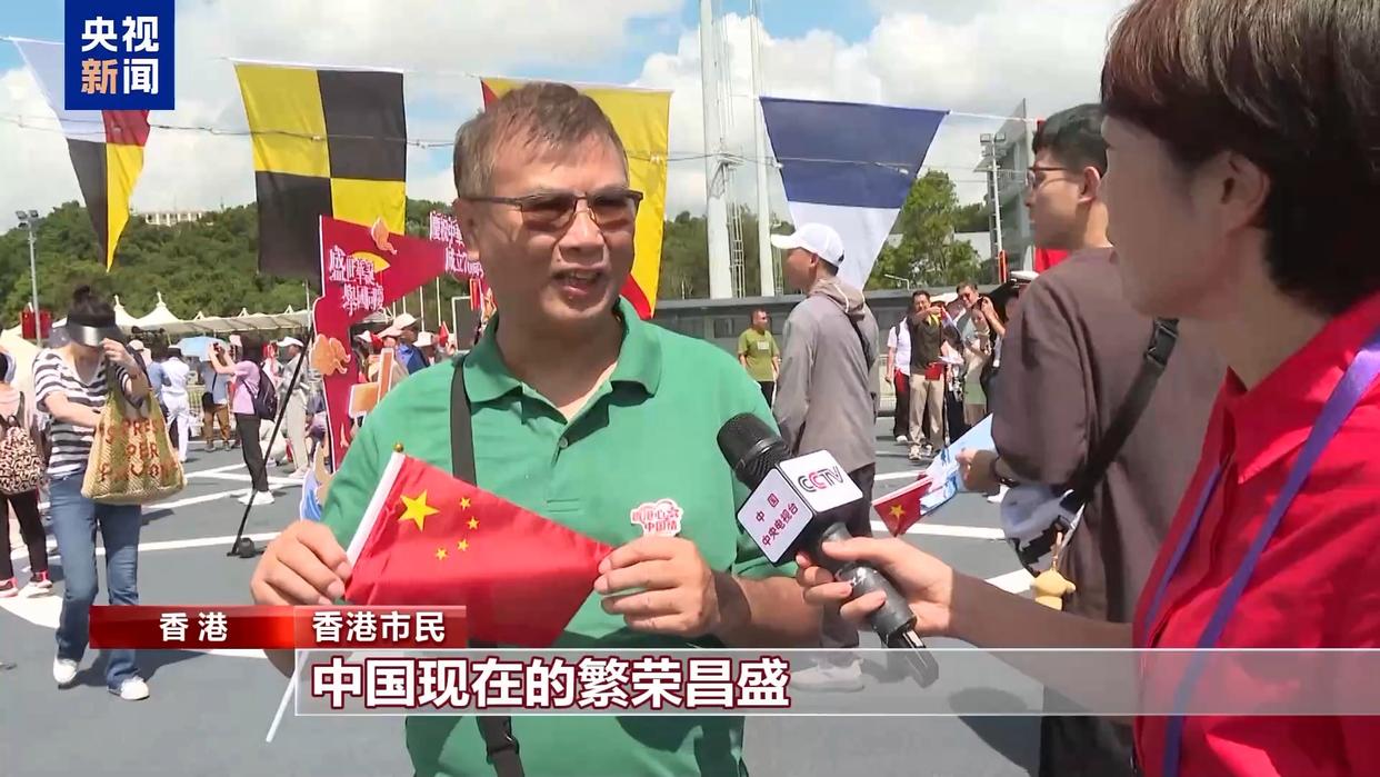 香港市民:中国现在的繁荣昌盛,我们国家的现代军力可以让我们对国家的安全充满更大的信心,我们为国家的强大感到骄傲。