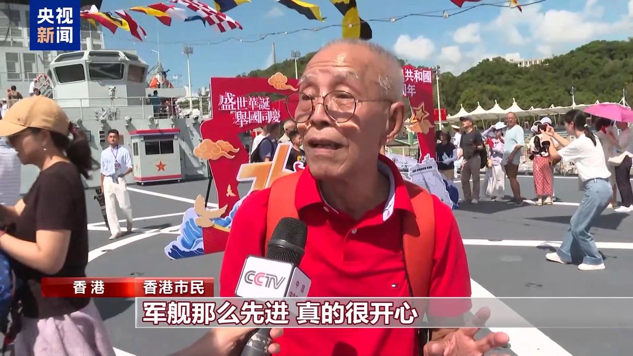 香港市民:军舰那么先进,真的很开心。我今年已经76岁,希望中国继续向前进,作为中国人真的感到很开心。