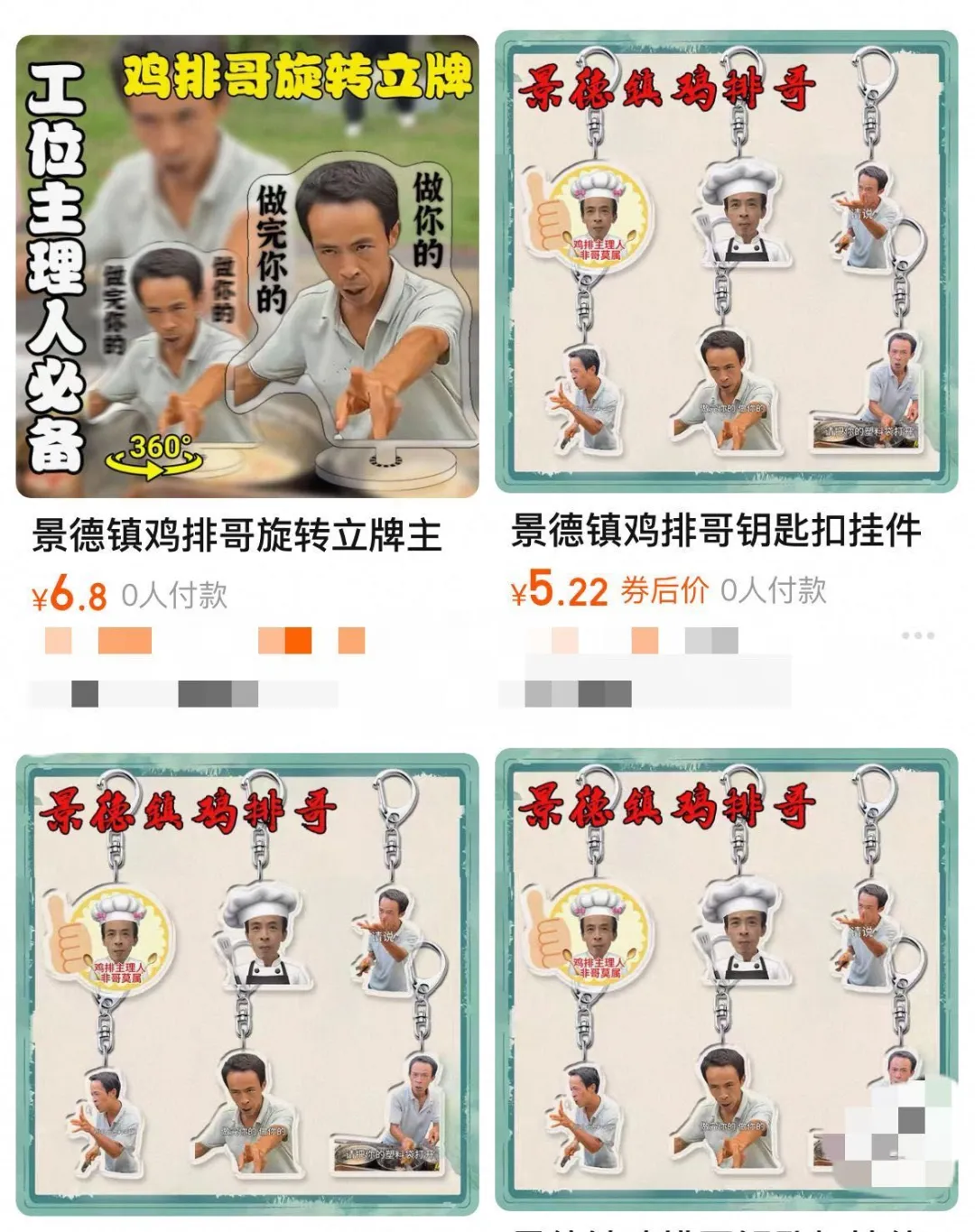 近日,随着江西景德镇“鸡排哥”的爆火,网上也开始出现关于“鸡排哥”的周边产品,例如“鸡排哥”钥匙扣挂件等。