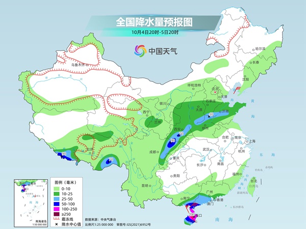 预计10月2日至5日,华西地区、黄淮等地多降雨,累计降雨量50-80毫米,部分地区100-160毫米,四川东北部、陕西南部局地可超250毫米,最大小时雨量20-40毫米,局地超50毫米,局地有雷暴大风等强对流天气。
