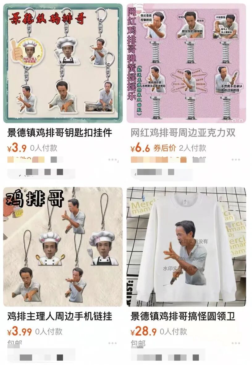 图片显示,钥匙扣上面有“鸡排哥”本人的各种照片,售价在3元-30元不等。记者查询发现,目前该产品在多数店铺的销售量显示为0。记者询问相关商家表示,这些周边是近两天刚推出的,买的人也挺多,都是买来收藏的。据媒体报道,此前已有热情顾客,现场送上自制“徽章”,“鸡排哥”在自己的直播间中胸口也佩戴了周边徽章。