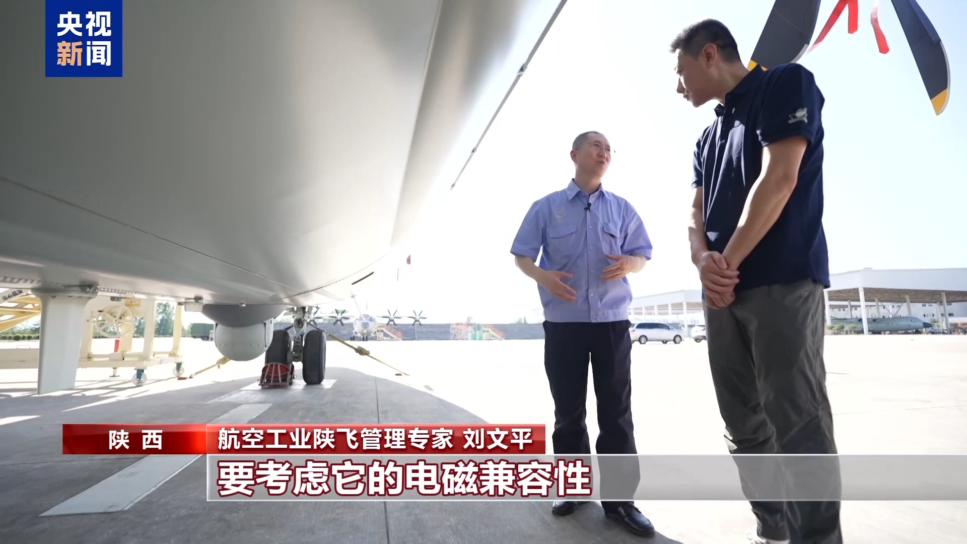 航空工业陕飞管理专家 刘文平:对海面探测的天线阵列,针对不同的作战对象,安装布置位置也有相应的差异。它是电磁环境,在装置的过程中,或者是在布局过程中要考虑它的电磁兼容性,所以在它的布置上还是有一定讲究。