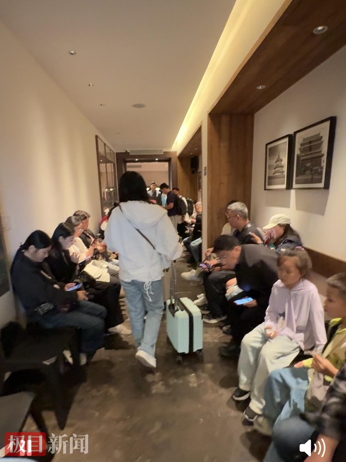 10月3日下午4时许,记者在四季民福烤鸭故宫店看到,店内座无虚席,排队区也坐满了等待就餐的游客,有顾客正在线下排队取号。