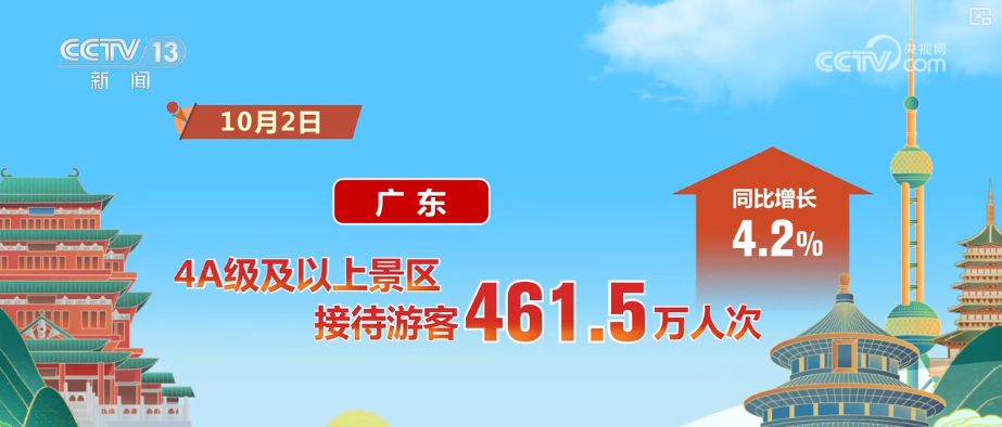 记者从广东省文化和旅游厅获悉,假期第二天,全省4A级及以上景区接待游客461.5万人次,同比增长4.2%。