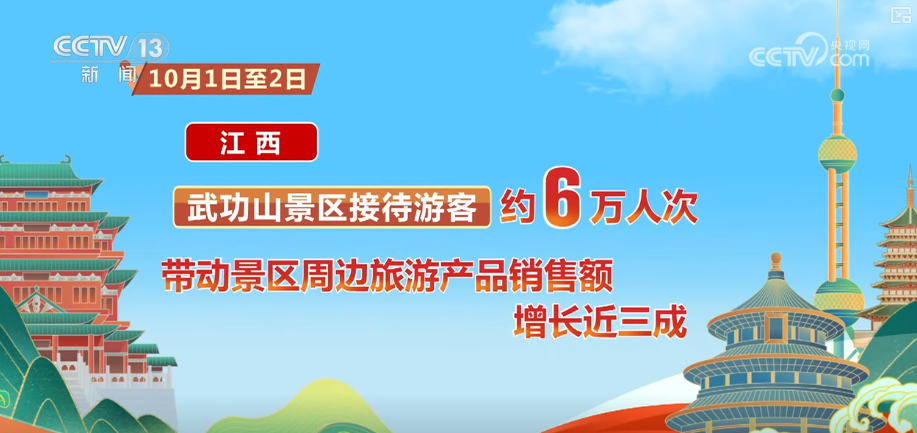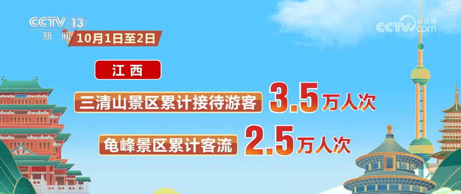 江西龟峰景区累计客流达2.5万人次。目前,景区推出政策,全国游客现场完整背诵《可爱的中国》节选,可以免门票入园,预计假期总客流量将突破10万人次。江西萍乡武功山景区接待游客约6万人次,带动景区周边旅游产品销售额增长近三成。A级旅游景区接待游客292.7万人次