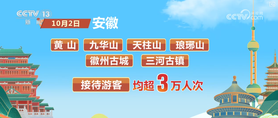 黄山、九华山、天柱山、琅琊山、徽州古城、三河古镇接待游客均超3万人次。130家4A及以上景区接待游客近143万人次