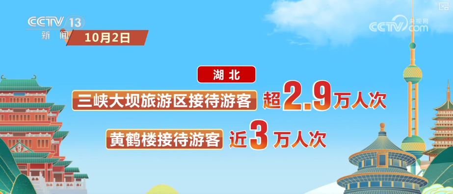 其中,三峡大坝旅游区延续热门态势,10月2日接待游客突破2.9万人次。黄鹤楼10月2日接待游客近3万人次,登楼观江、诗词打卡成为主流体验,夜间灯光秀一票难求。接待游客超1300万人次 游客消费近50亿元