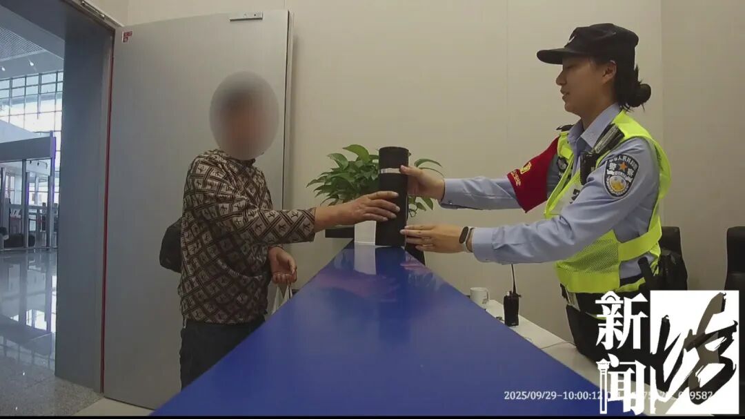 后来我们通过翻阅公共视频,发现有一位保洁人员将其保温瓶当做垃圾收走后,我们联系了该保洁人员,将其找回,并用最短的时间将其返还到失主手上。