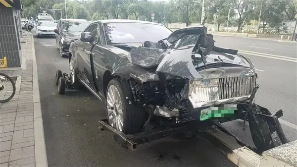 网传照片显示,一辆劳斯莱斯闪灵轿车停在公路上,车身损毁严重,安全气囊弹出。车外人员疑似知名车评人陈震。记者对比该车的车牌号,与此前媒体曝光的车评人陈震车辆为同一号牌。有网友称,该事故发生在万寿路。