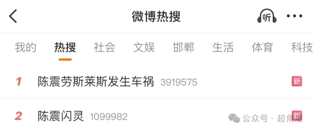 刚刚,“陈震劳斯莱斯发生车祸”词条登上热搜第一。