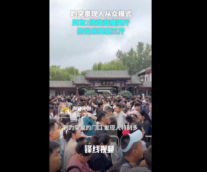 李女士称到趵突泉门口就发现人特别多,大家都想去看看课文里的趵突泉,人多到一眼望不到头。有网友表示,挤进去瘦两斤,挤出来瘦三斤。