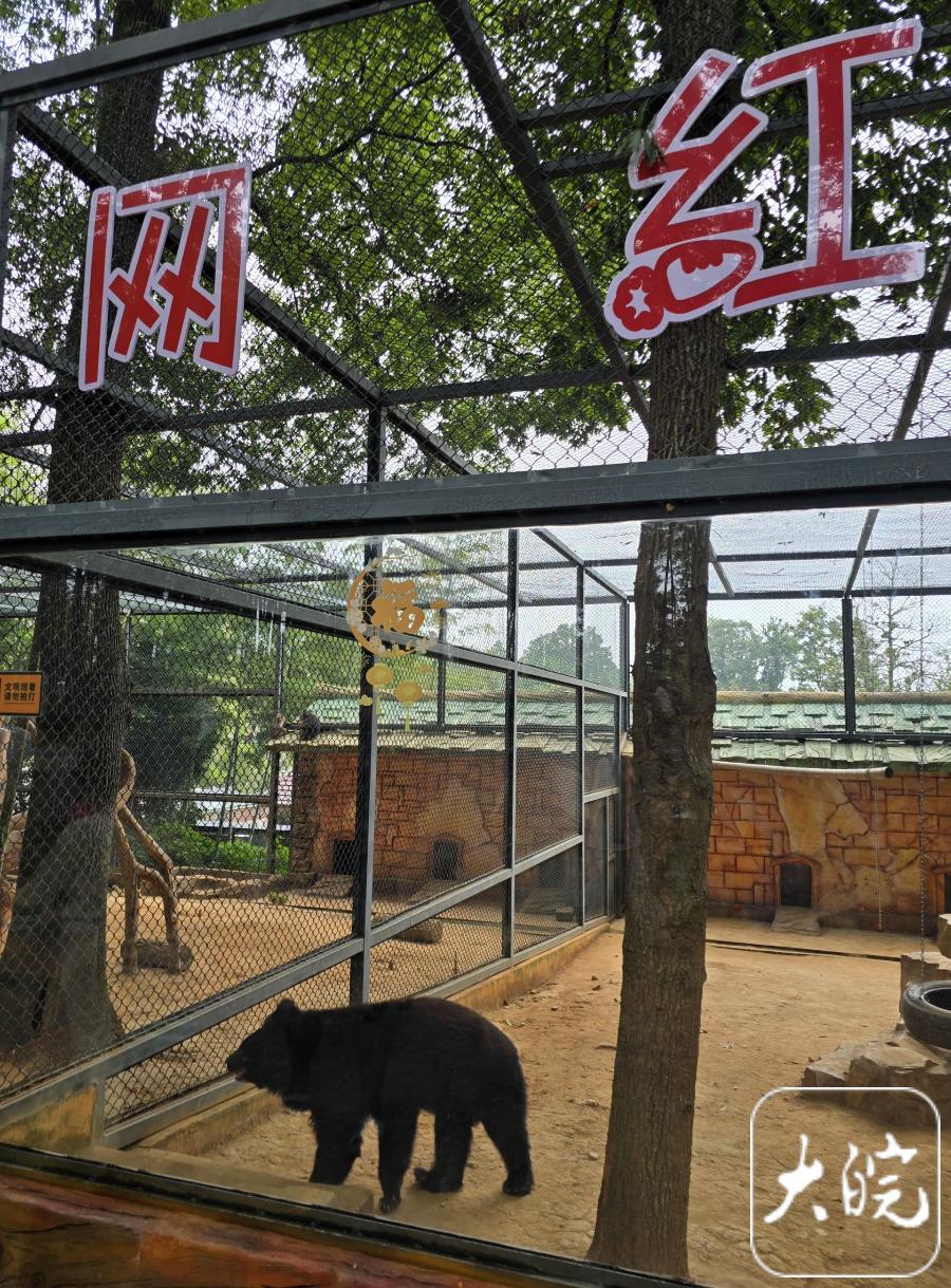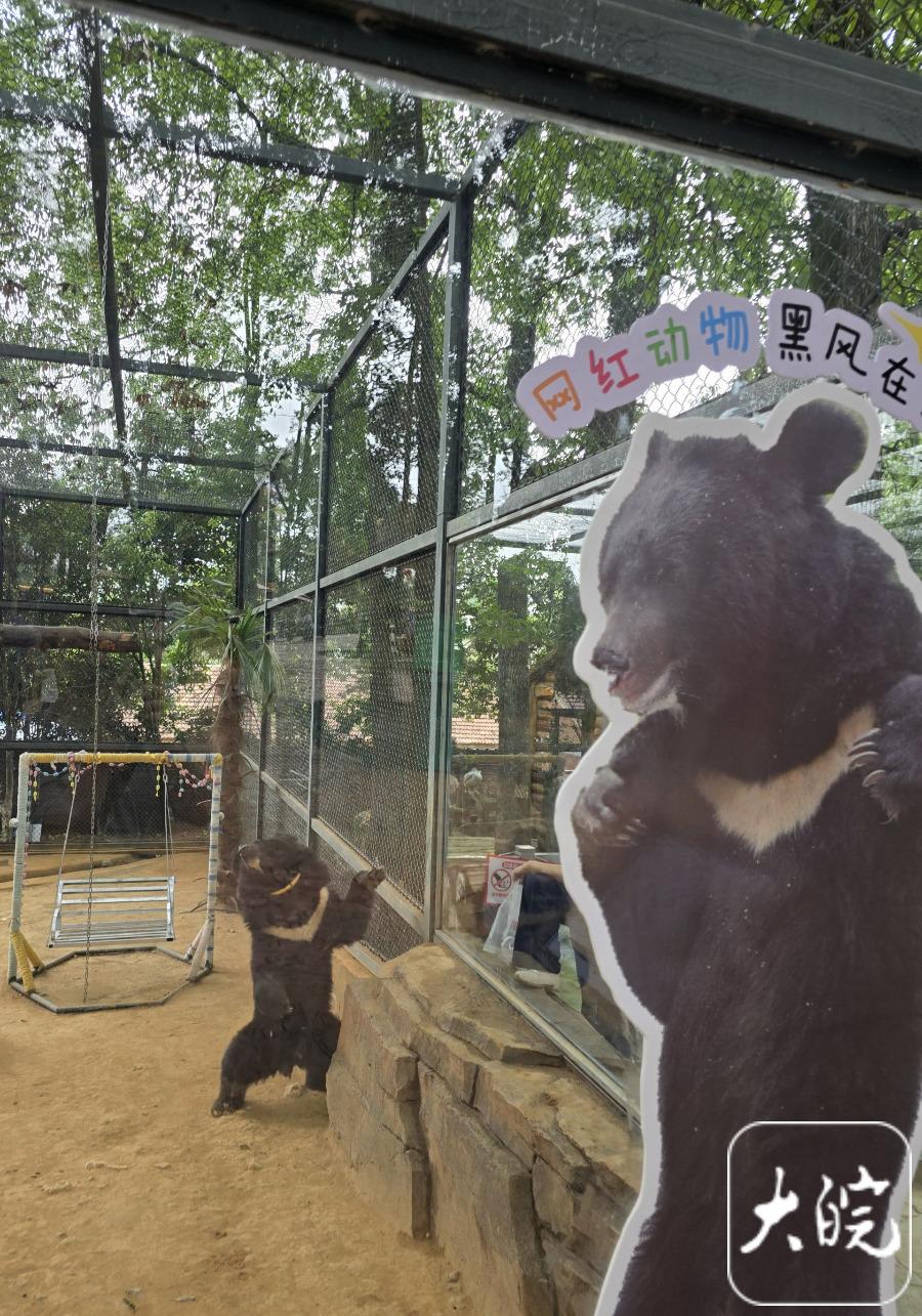 10月4日下午,大皖新闻记者来到皖南野生动物园,看到“黑风”的笼舍外,已经挂上了“网红动物黑风”的牌子,还有自己专属的“熊型”立牌。不少游客慕名而来,为一睹“黑风”“熊姿”。