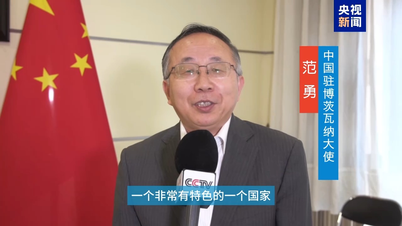 中国驻博茨瓦纳大使范勇:博茨瓦纳是南部非洲一个非常有特色的国家。它在1966年才独立,但从独立以来从未经历过战争,是一个特别平和、安全、发展顺利的国家。过去这些年,在博方的努力之下,经济发展始终保持在非洲国家的前列。很多中国观众对博茨瓦纳可能并不是特别了解。这个国家位于非洲南部,面积有58万平方公里,但人口只有255万,可以说是地广人稀。