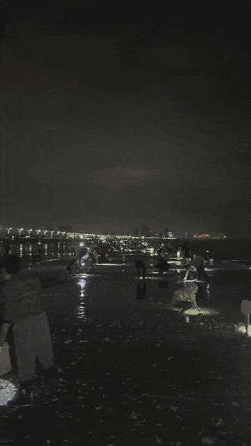 上千人戴着头灯赶海
