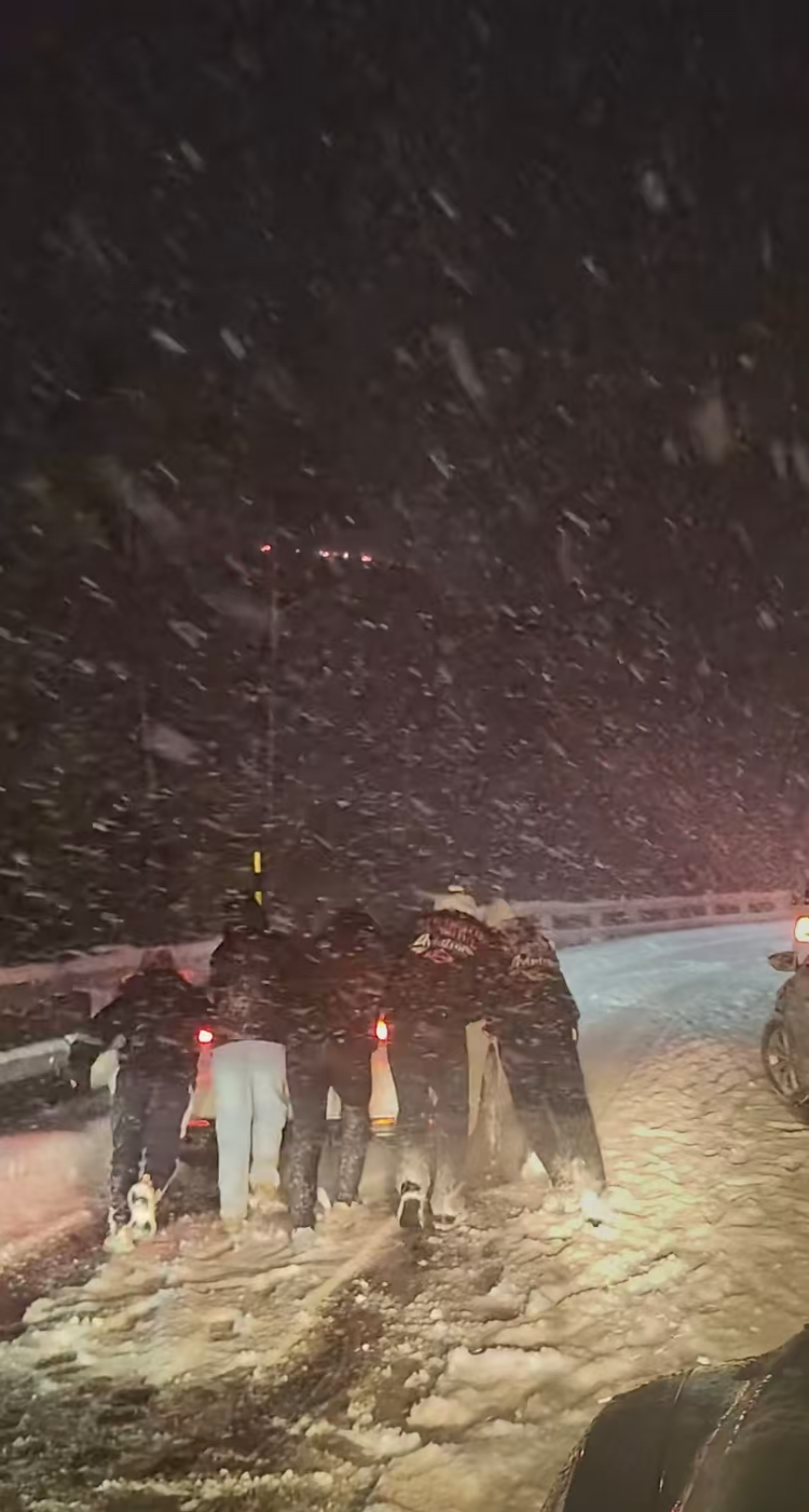 5日上午,上海游客“安宁”告诉上游新闻记者,他们一行自驾旅行,4日晚上从禾木出发,5日凌晨4点才冒雪抵达了布尔津县。“在山上堵了8小时,现场交警有指挥,路上有救援,有些车爆胎了,工作人员在安排拖车。有些车没有安装防滑链上不去坡,就由拖车拖上去。除雪铲车一直在工作,还有工作人员在路上撒盐化雪,我们凌晨1点左右车子才动。”