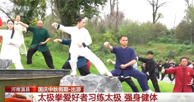 在河南温县,假期期间,陈家沟国际太极院组织太极拳爱好者们习练太极拳,强身健体。