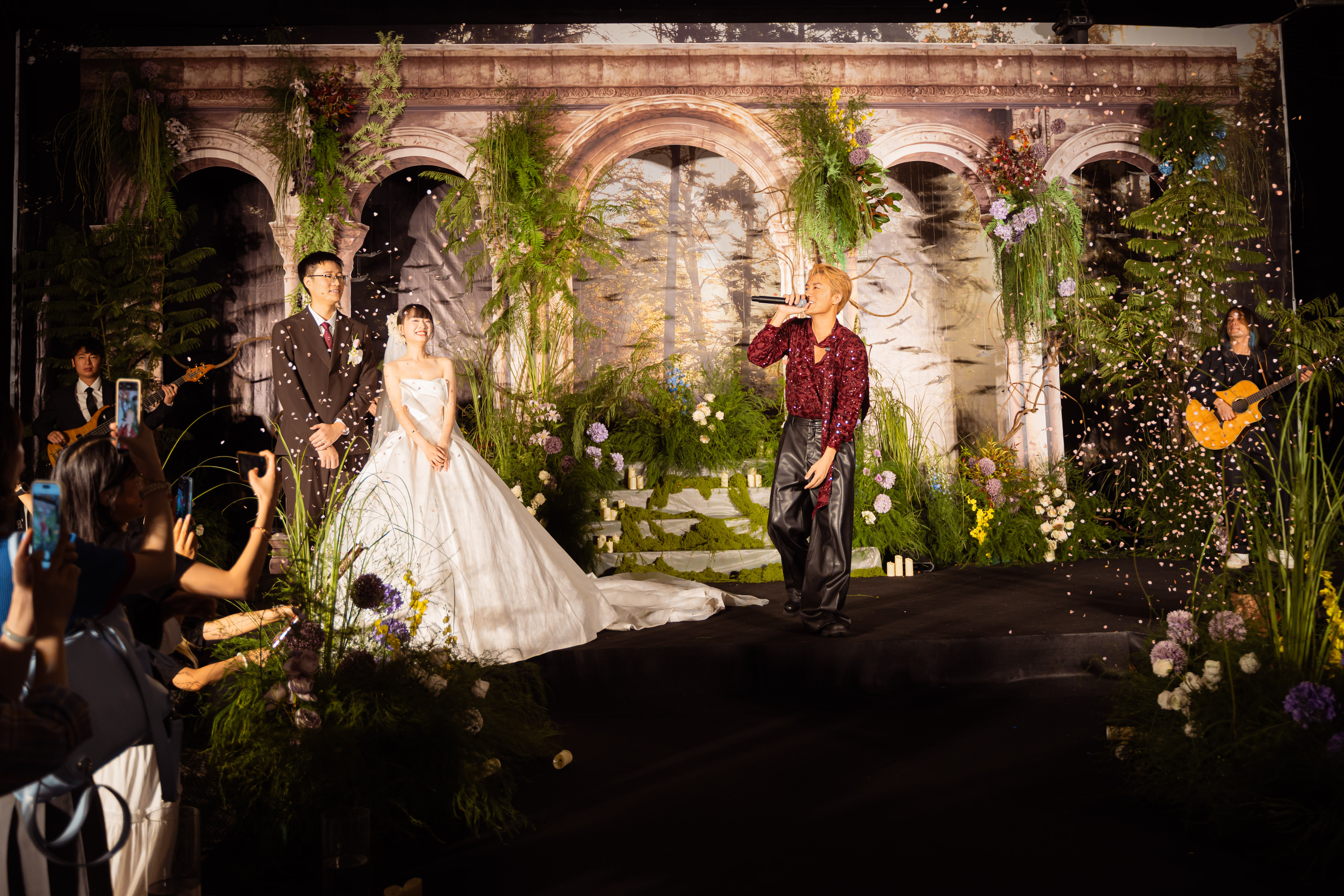 吴克群在婚礼现场演唱歌曲。