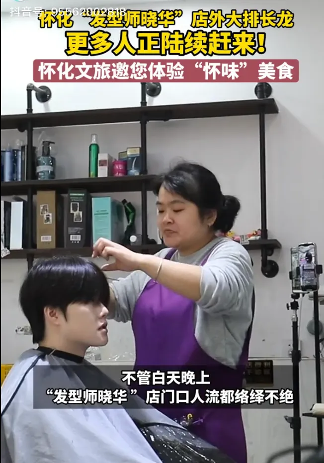 视频意外走红后,晓华一周内涨粉超百万,理发店成为网红打卡地。