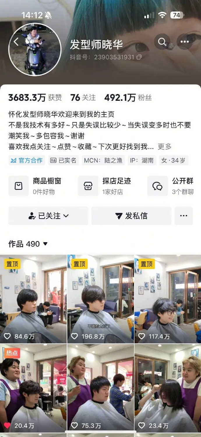 视频意外走红后,晓华一周内涨粉超百万,理发店成为网红打卡地。据当地媒体报道,2024年11月2日到21日,不到一个月的时间,晓华理发店人流量累计超30万人次,带火周边60多家临时商铺,拉动周边现场消费超3000万元,对整个怀化市的消费贡献更是达到惊人的1.8亿元。