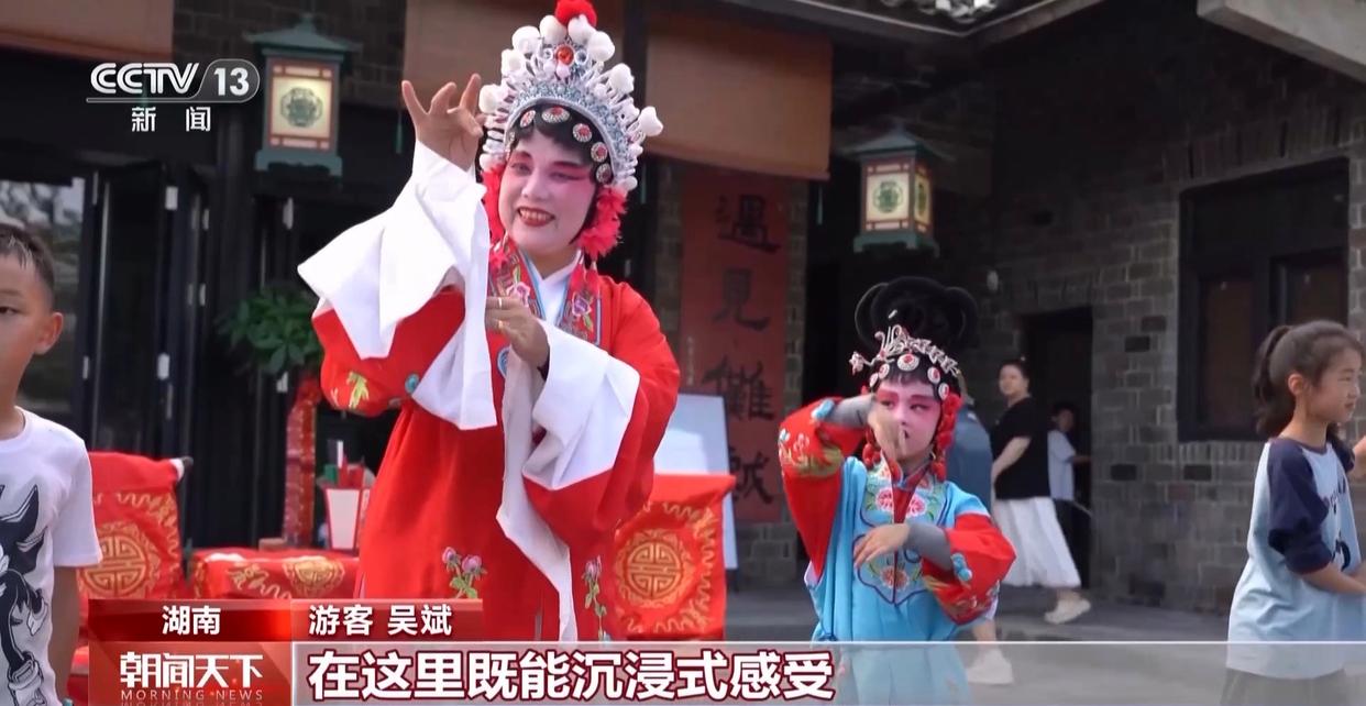 在怀化中方县的荆坪古村,人们不仅能近距离沉浸于淳朴的乡村景致,还能欣赏到当地剧团带来的辰河高腔演出,更有机会在老师的指导下亲身学唱。