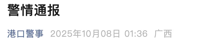 10月8日,防城港市公安局港口分局发布警情通报,全文如下: